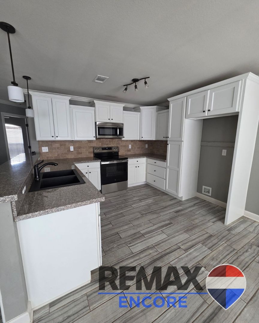 12 month lease. Great Open Floor Plan, Kitchen has a breakfast bar for extra seating, granite countertops and tons of cabinet and storage. Fenced back yard with a nice deck.